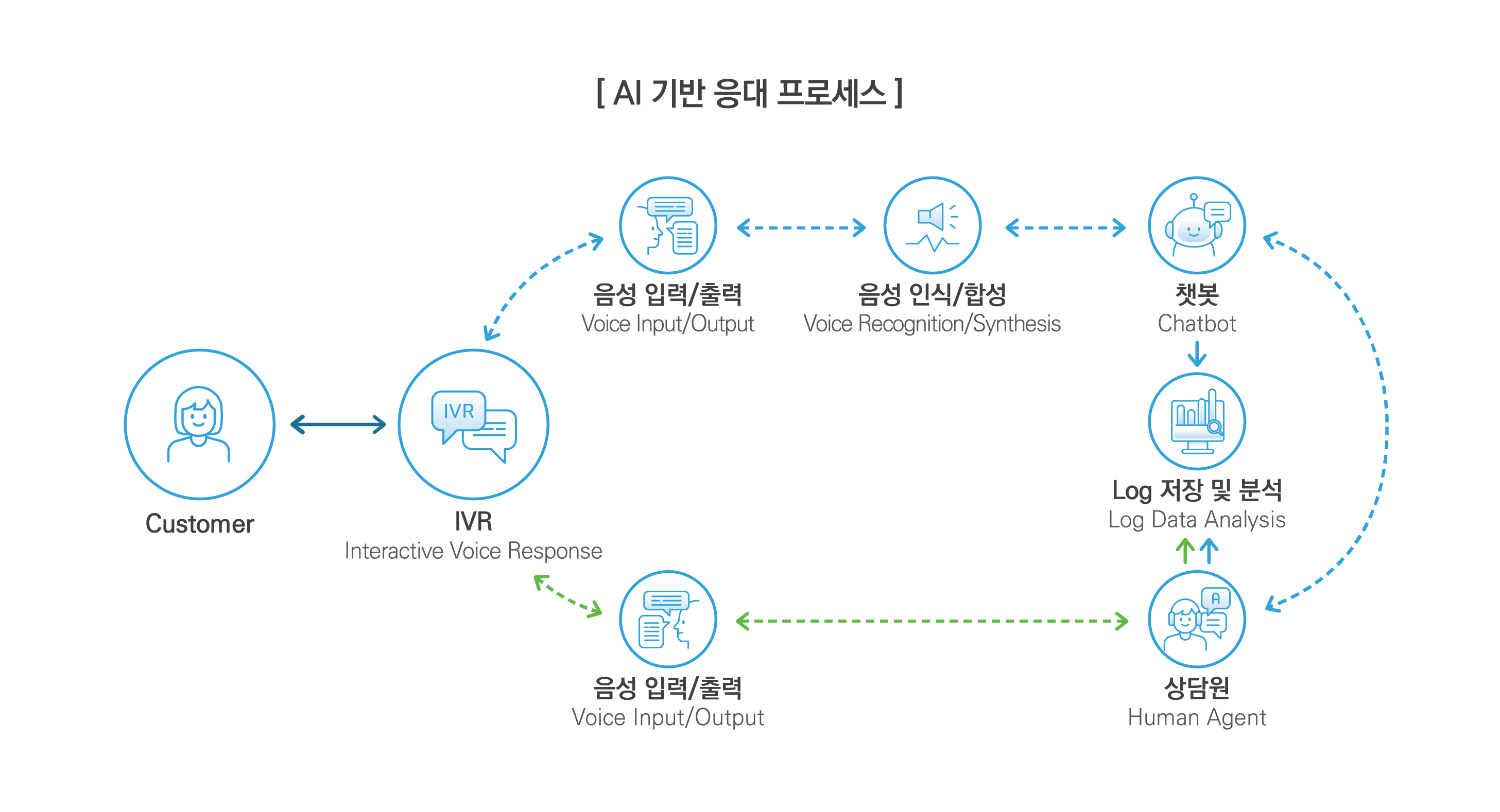 AI Contact Center는 AI를 통한 음성인식, 자연어 처리 및 대화모델, 음성 합성 기술을 이용하여 기존 유인 상담원이 수행하던 Inbound/Outbound Call 업무를 AI Bot을 통해 처리할 수 있는 서비스를 제공합니다. 직관적인 UI를 통해 고객 응대 흐름을 빠르게 생성할 수 있고, 고객 응대 규모에 따라 확장과 축소를 유연하게 관리할 수 있습니다. 또한, AWS Cloud Platform의 인프라 및 다양한 통신 분야 파트너사의 솔루션을 연계하여 빠르게 클라우드 기반의 Contact Center를 구축할 수 있습니다. 한국어, 일본어, 중국어, 영어, 스페인어 총 5개 언어를 지원하고 있습니다.