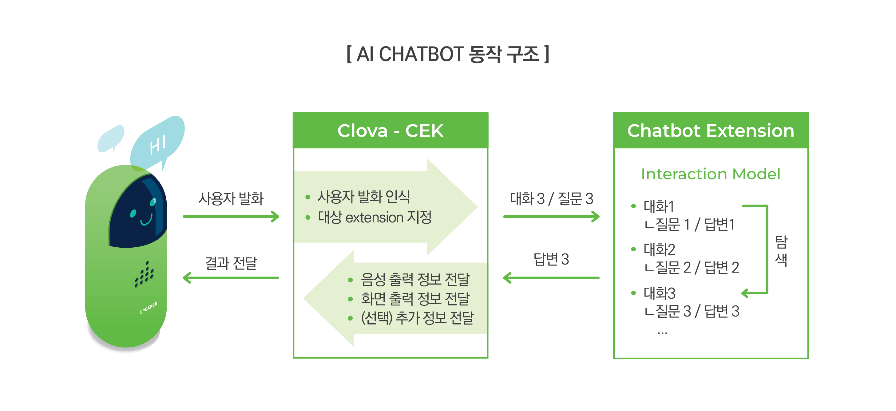 AI Chatbot을 통한 서비스는 사용자의 질문 의도를 파악하여 적절한 답변을 제공하는 대화형 AI 서비스입니다. NAVER/AWS Cloud Platform의 챗봇 빌더를 이용해 챗봇이 처리할 대화 데이터를 입력하고, 이를 챗봇 엔진이 학습하여 적절한 답변을 응답하는 챗봇 서비스를 쉽게 구현할 수 있습니다. 사용자의 질문 의도를 더 잘 이해하고 질문 의도에 맞는 정확한 답변을 제공하는 챗봇 엔진을 만들기 위해 지속적으로 챗봇의 기능을 개선하고 최적의 대화 모델을 연구하고 있습니다.