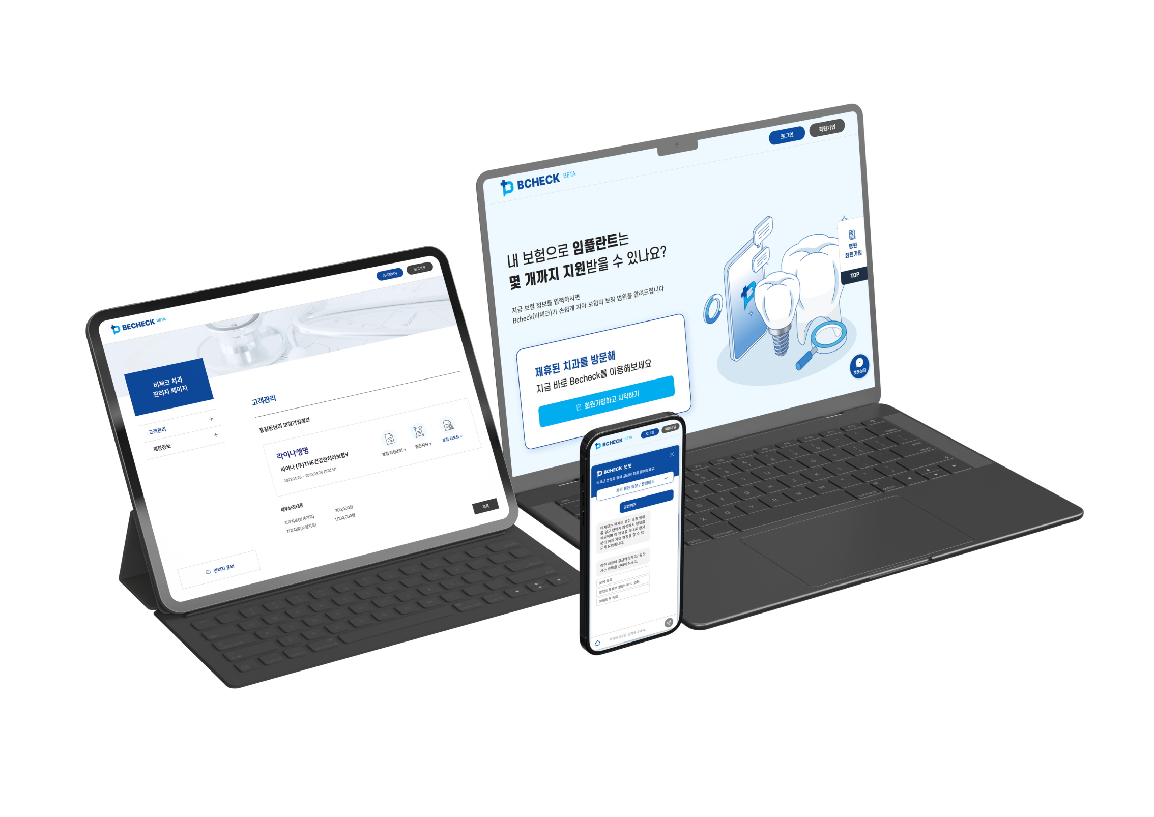 비체크는 치과 운영 플랫폼에 맞추어 개발된 엔진으로서, 사용자가 자주 사용하는 카카오톡, 라인과 같이 친숙한 메신저를 통해 사용자 보험 정보에 따른 합리적인 치료 플랜을 설계할 수 있도록 지원합니다.