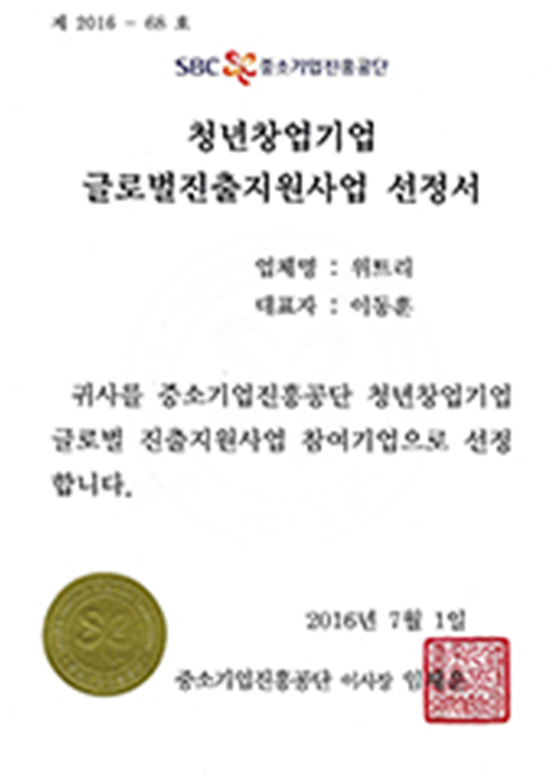 - 청년창업기업 글로벌진출지원사업 선정